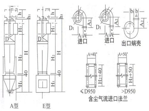 含塵氣流經收縮形進口切向進入除塵器蝸殼時,由上向下作螺旋形旋轉運動,塵粒在離心力的作用下被拋向器壁,并沿器壁下旋,進入特殊結構的密封收塵裝置內;凈化后的氣體由下向上作內螺旋形旋轉經芯管排出。